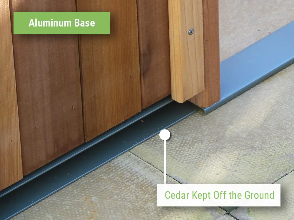 - Aluminum base frame lifts cedar off the ground to help reduce early rot risk