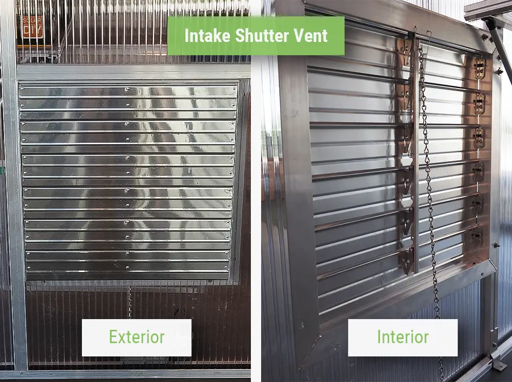 - Best paired with an intake shutter vent to bring fresh air across the structure as warm air is exhausted