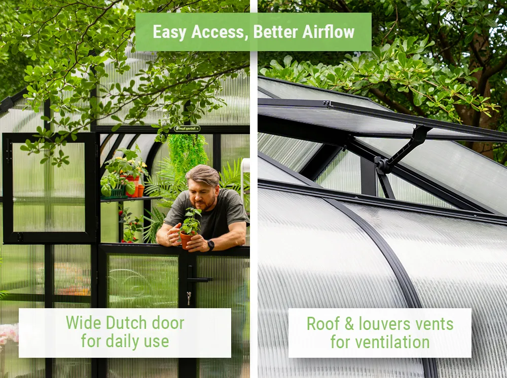 - Wide Dutch-style double door:easier access for trays, tools, and harvests